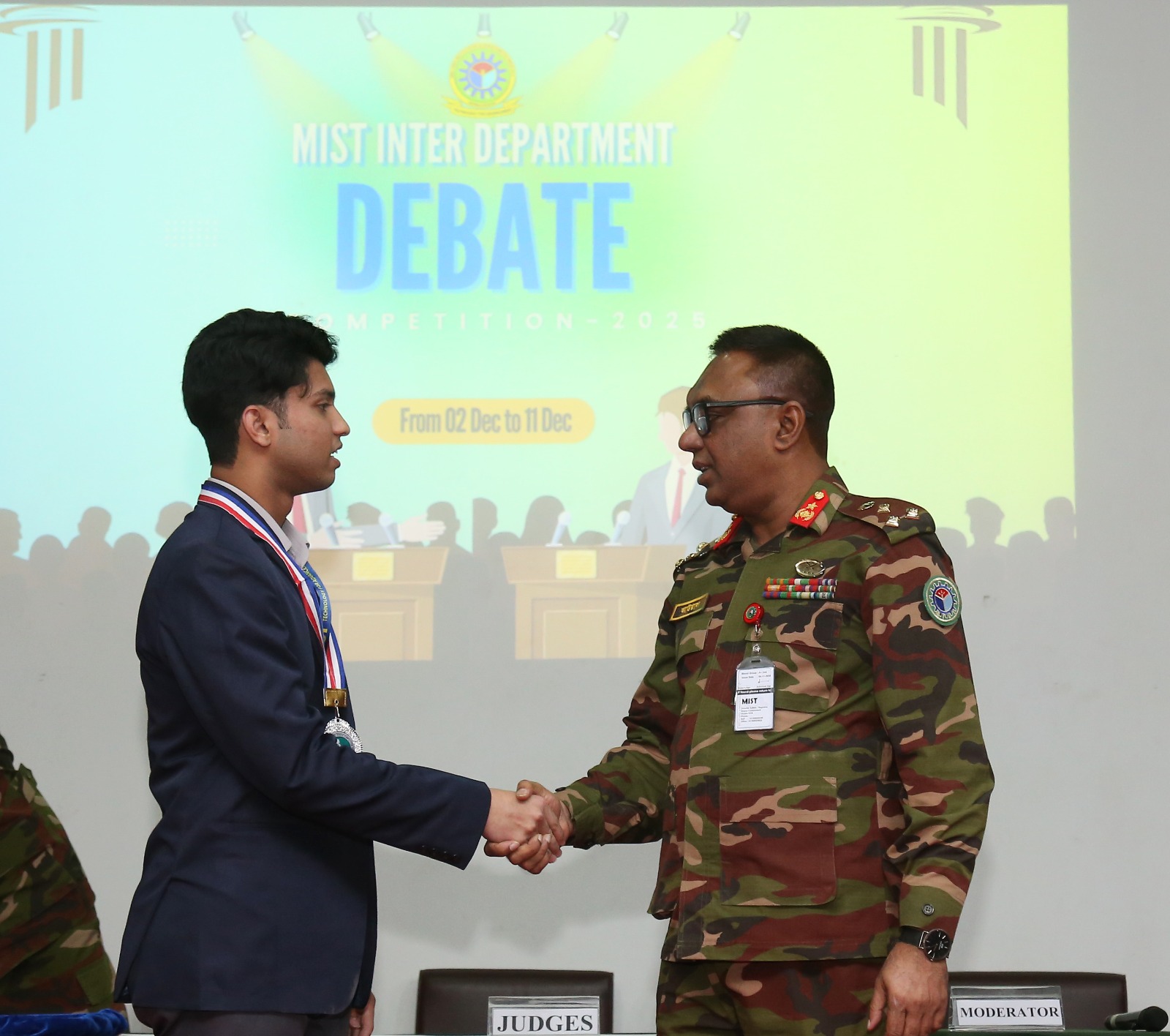 Starting on 2nd December 2025, MIST Inter-Department Debate Competition 2025 formally concluded today, 11 December 2025. The Department of EECE emerged as the Champion, while the Department of IPE secured the position of Runner-up. Brigadier General Md. Awal Khan, Head of the Department of Mechanical Engineering, graced the closing ceremony as the Chief Guest. The competition was organized under the supervision of the Department of Science and Humanities, in collaboration with the MIST Debating Society.