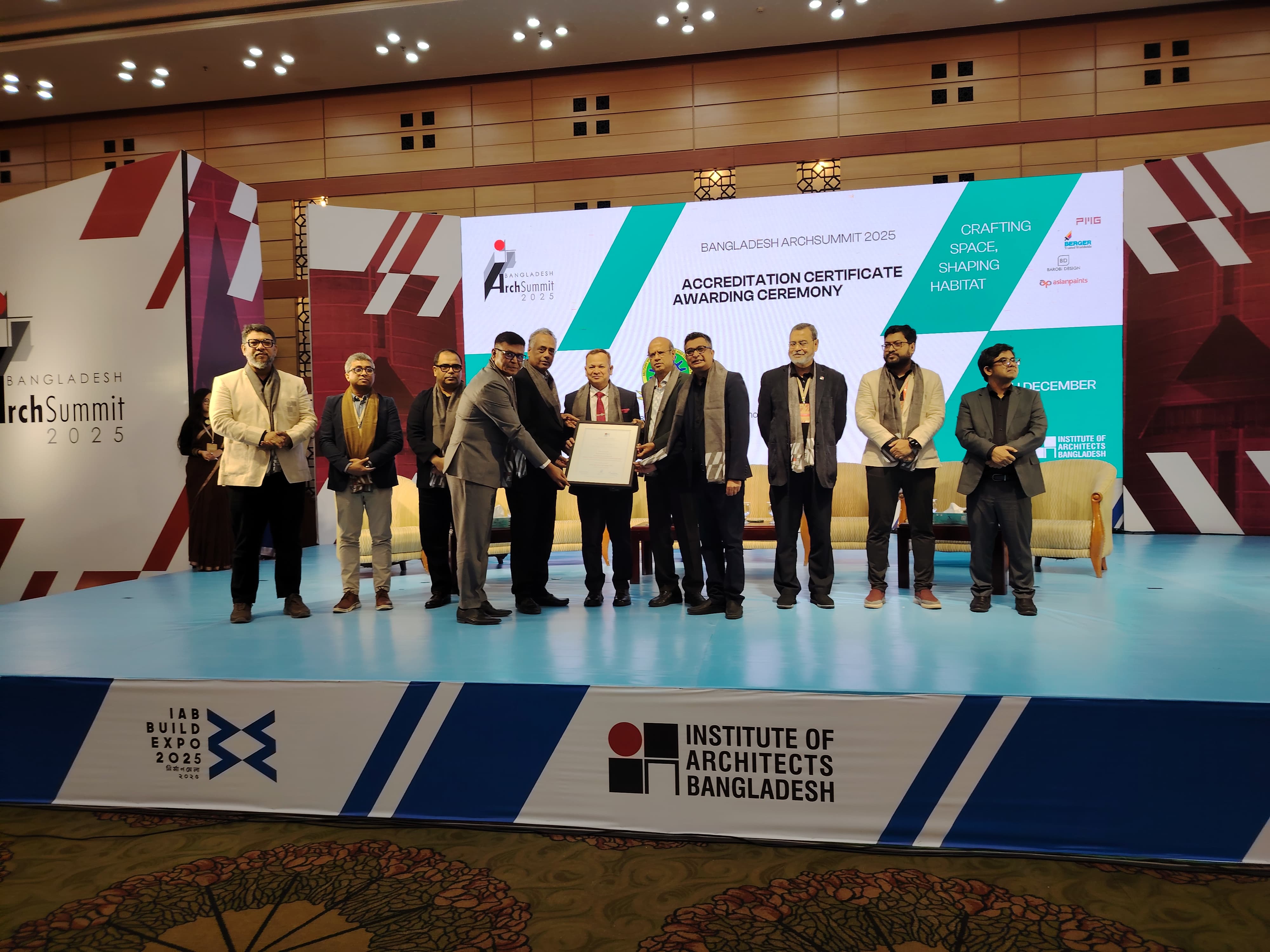 The accreditation was awarded on 12 December 2025 during the Arch Summit 2025. The certificate was formally received by Maj Gen Md Nasim Parvez, BSP, ndc, afwc, psc, Commandant of MIST, from Ar. Dr. Abu Sayeed M. Ahmed, President of the Institute of Architects Bangladesh.