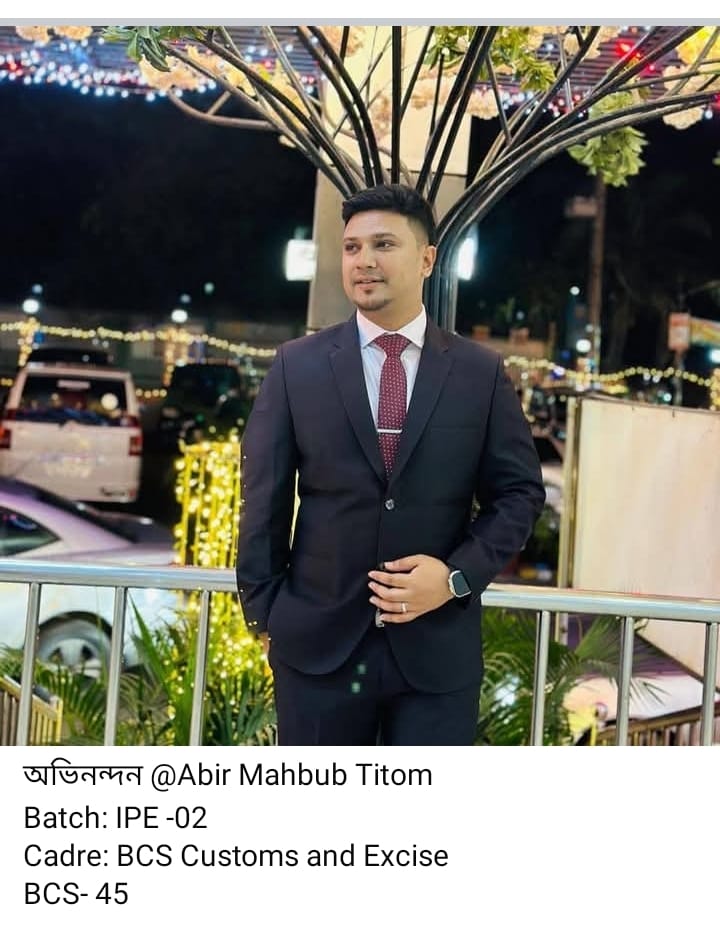 Ahmed Imrul Kayes from Batch EECE-15 has qualified in the BCS Administration cadre and is currently serving as an Instructor at Mymensingh Polytechnic Institute. Asaduzzaman Nur from Batch EWCE-03 has been selected for the BCS Ansar cadre. Abir Mahbub Titom from Batch IPE-02 and Asif Ahmed Abeer from Batch CE-19 have both qualified for the BCS Customs and Excise cadre.