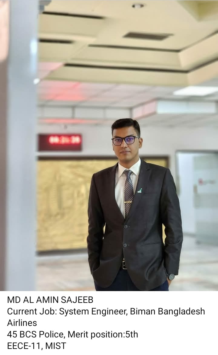 Nishat Islam from Batch EWCE-04 has been selected for the BCS Technical Education (Civil) cadre and is currently serving as a Lecturer in the EWCE Department at MIST. Md. Rifat Chowdhury from Batch EWCE-02 has qualified in the BCS Administration cadre and is currently serving as an Instructor at Khulna Polytechnic Institute. Additionally, Abu Saleh Muhammad Musa from Batch ME-15 has qualified in the BCS Technical Education cadre.
